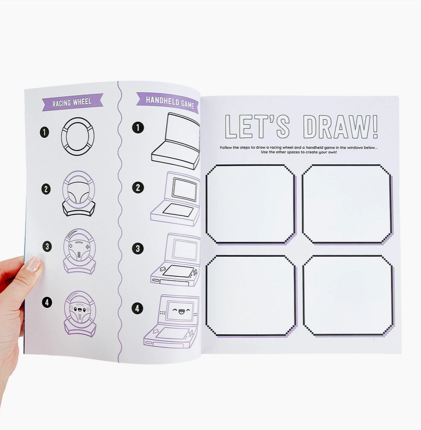 The CUTEST and most EPIC stickers + step-by-step drawing book ever! Packed with over 400 gaming-themed stickers, this book will level up your creativity and get you drawing all your favorite gaming gear. Follow the simple how-to-draw guides, create your own designs, and deck out your pages with consoles, controllers, and pixel-perfect fun! And so.many.stickers.