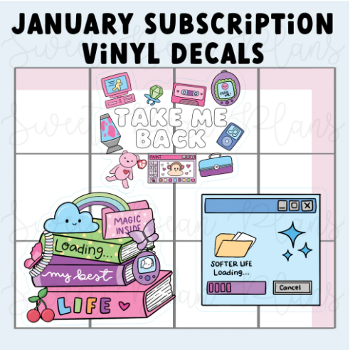 Your happy mail will be shipped to Stickie Planning at the end of the month, and should arrive around 2 weeks later. Subscriptions must be purchased separately with no other items in your cart. If other items are included in the order, the items will not ship until the subscriptions ship.