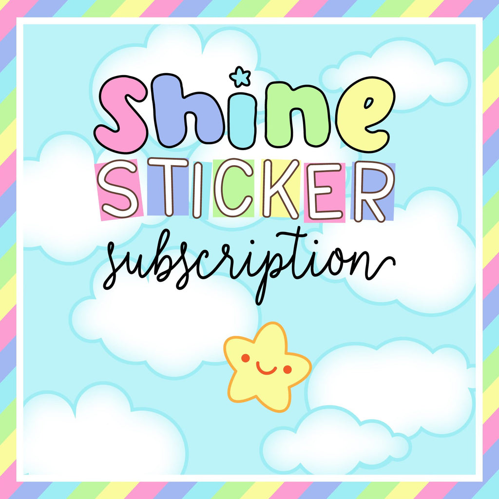 Your happy mail will be shipped to Stickie Planning on or around the 25th, and should arrive around 2 weeks later. Please purchase the subscription separately. You can select either the premium matte or matte removable vinyl for the sticker sheets in your sub. All of the items in the sub are exclusive, but if there are any extras of anything we may purchase and them later. Shine Sticker Studio monthly freebies will not be included in the subscription orders.