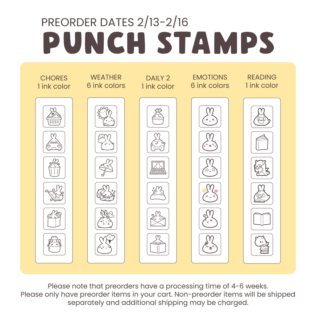 Our Punch Stamps Preorder is finally here! This will be the chance to grab our previously sold out designs and a couple new ones at a preorder price! If you can’t decide which designs to grab, we will have an option for you to grab the the entire 10-piece set at a discounted price as well.