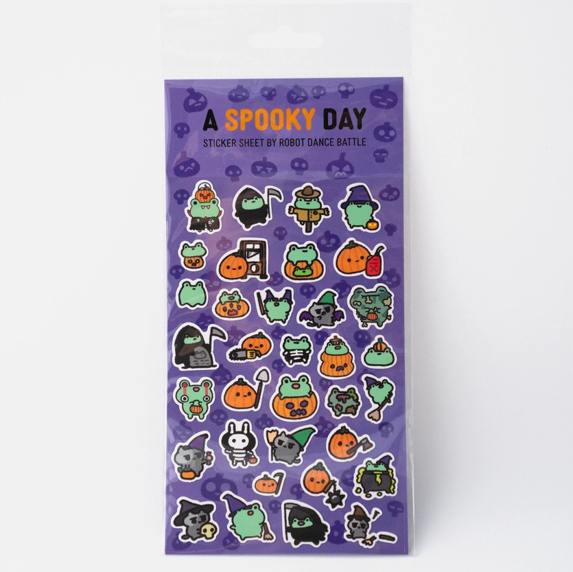 There are 34 individual stickers on the sheet full of ghostly foods.