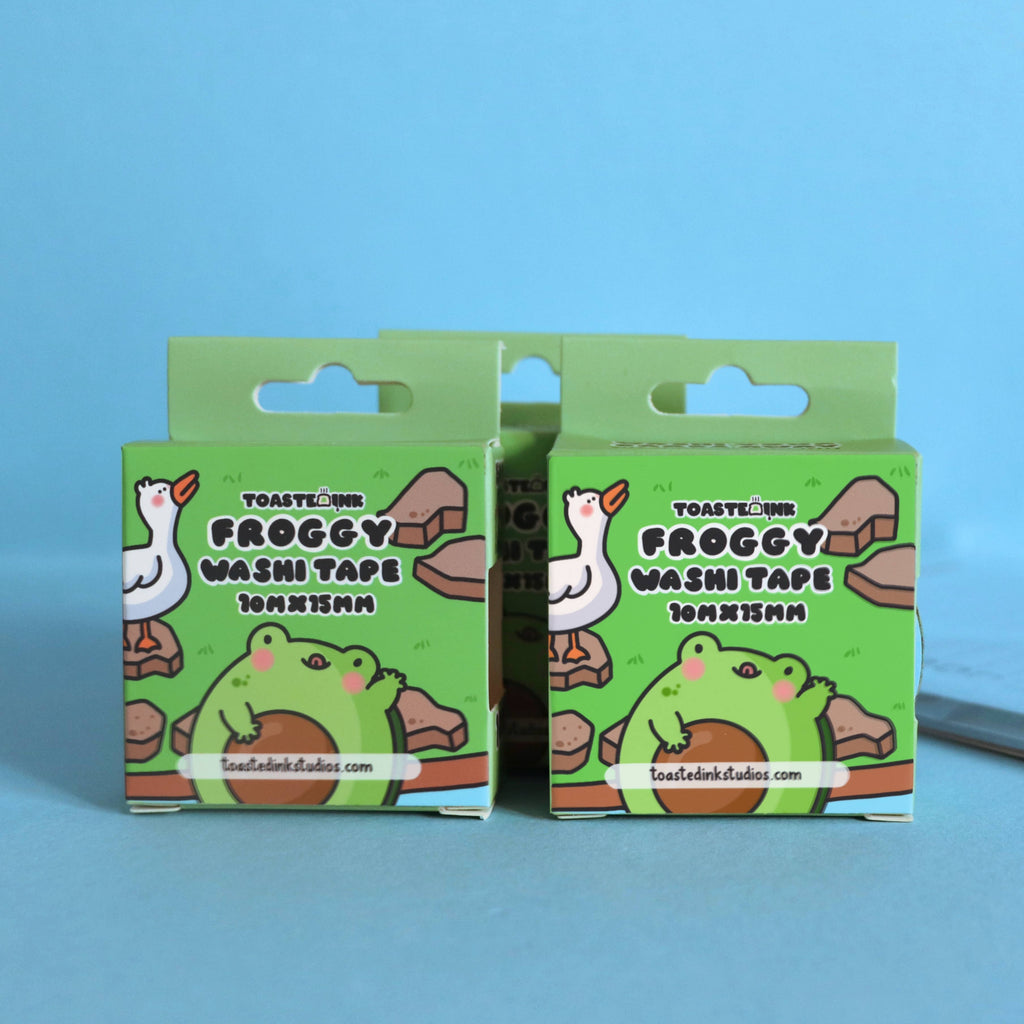 Ribbet ribbet! Calling all frog lovers! Are you ready to decorate your planners and journals with the ultimate cuteness? Featuring a number of cute frogs splattered all over this washi tape, this frog washi tape design has been made to add a pop of colour to your surfaces and make your day just using it. Featuring frogs wearing raincoats, royal highness frogs, musical frog characters and so much more. The cuteness goes on for 10 metres long and is here to make the journaling journey all that more fun! Washi Tape Details: - Proudly designed in the UK - Size: 10m x 15 mm - All come tightly sealed for protection - Comes in the cutest of washi tape box with a euro hole for hanging.